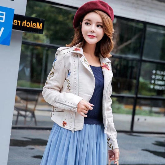 Fashion New Women's Leather Jacket Bright Colors Black Motorcycle Coat Short Faux Leather Biker Jacket Soft Jacket Female