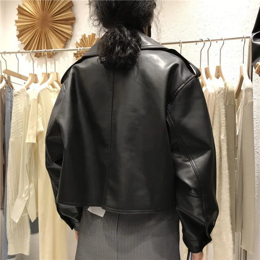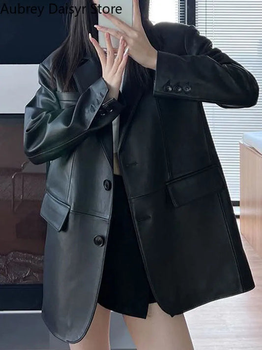 Korean Black Leather Jacket Women Streetwear Loose Formal Leather Blazers Female Fashion Trend Chic Punk Leather Jacket 2023 New