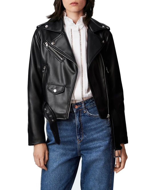 Women's Faux Leather Motorcycle Jacket PU Slim Short Biker Coat
