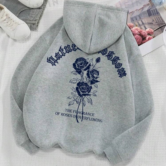 Rose And Letter Print Hoodie Casual Sweatshirt Men And Women