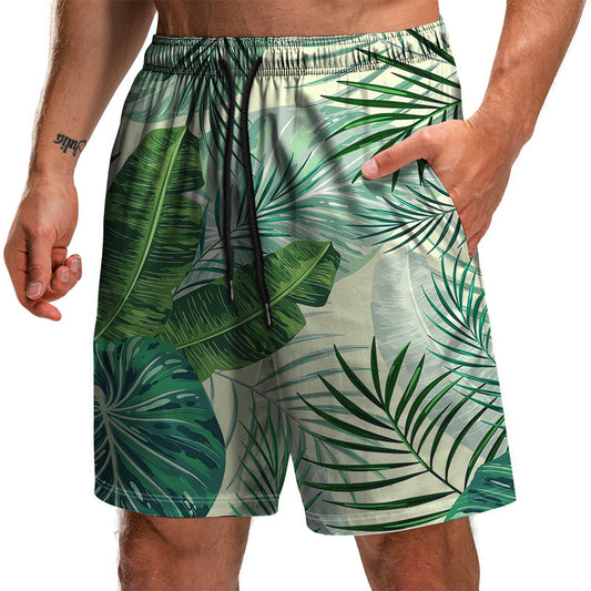 Summer New Leaf Series 3D Printed Shorts Loose Beach Pants Fashion Casual Shorts Men