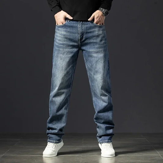 Straight Jeans Tall Guys Students Casual Plus Size 40 Loose Stretched Classic Extra Long Pants Overlong Lengthen Denim Trousers