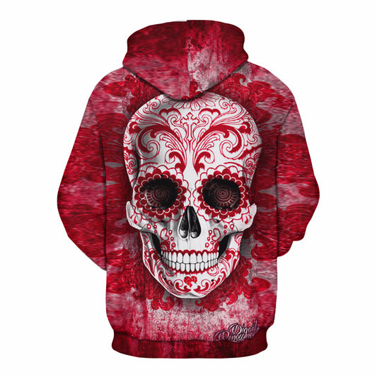 Men And Women 3D Skull Print Hooded Sweatshirt