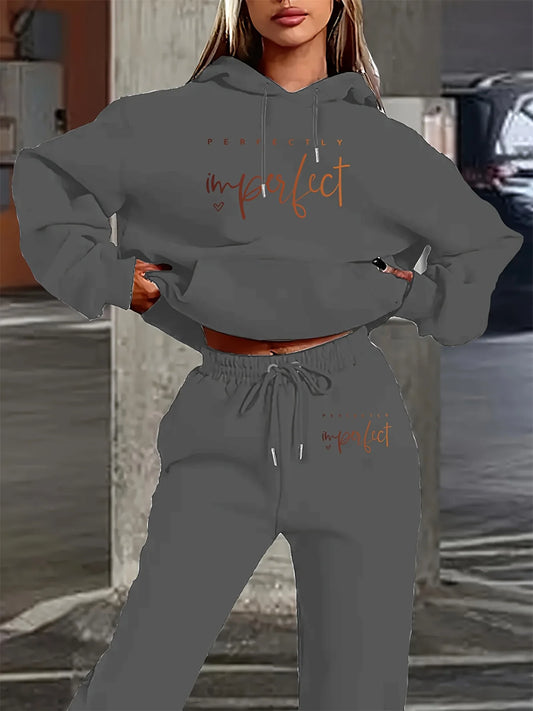 Letter Printed Women's Tracksuit Quality Two Piece Set for Women Fashion Jogging Sweatshirt Suit Drawstring Sports Daily Hooded
