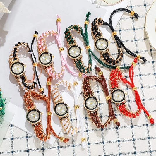 Women's Watch Fashion Rhinestone Braided Rope Bracelet Quartz Watches