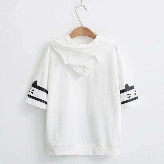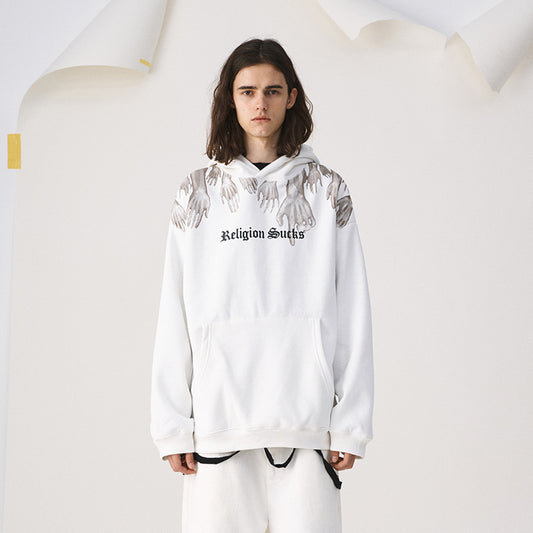Women Fashion Feather Printed Hoodies Autumn Winter Plus Velvet Casual Loose Sweatshirt