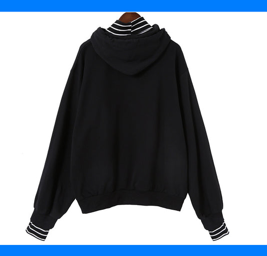 Harajuku striped turtleneck hoodies women kpop autumn long sleeve pullover female students oversize plus size tops sweatshirts