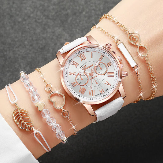 6PCS/Set Women's Watch Fashion Roma Dial Quartz Watches Bracelets Set (Without Box)