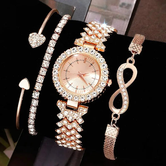 2023 5pcs Set Luxury Ladies Quartz Wrist Watches Dress Watch Women Crystal Diamond Watches Clock Women Montre Femme