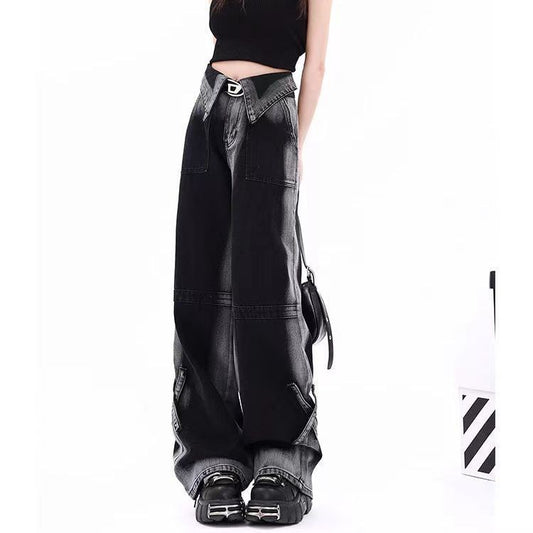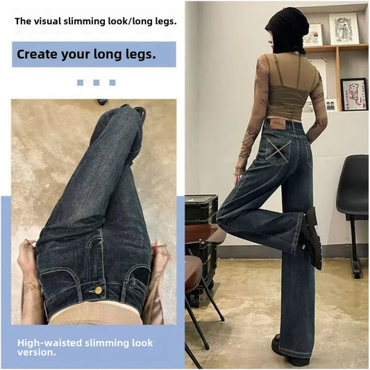 Retro Casual Jeans With Pockets Fashion Straight Trousers Leg Wide Leg Pants For Women