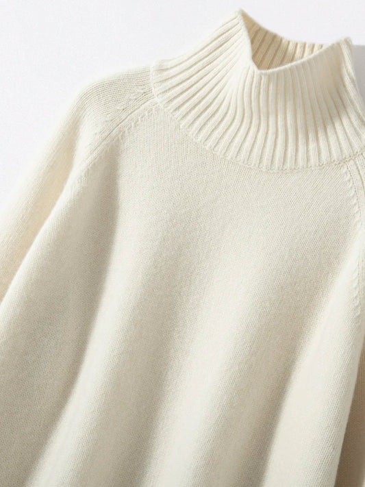 Women's 100% Cashmere Sweater Turtleneck Raglan Sleeve Pullover Autumn Winter Thick Casual Loose Style Cashmere Knitwear Korean