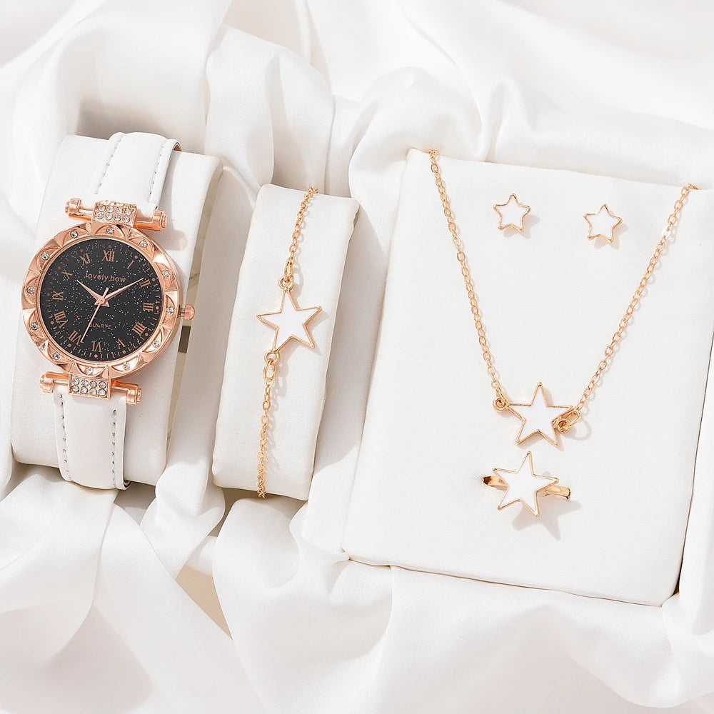 2023 5pcs Set Luxury Ladies Quartz Wrist Watches Dress Watch Women Crystal Diamond Watches Clock Women Montre Femme