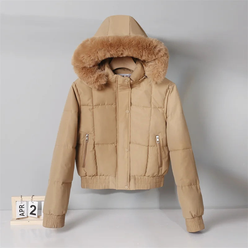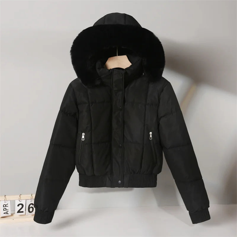 2024 Fashion Winter Short Parkas Women's Cotton-padded Jacket Fleece Liner Hooded Coats Thicken Fur Collar Warm Student Overcoat