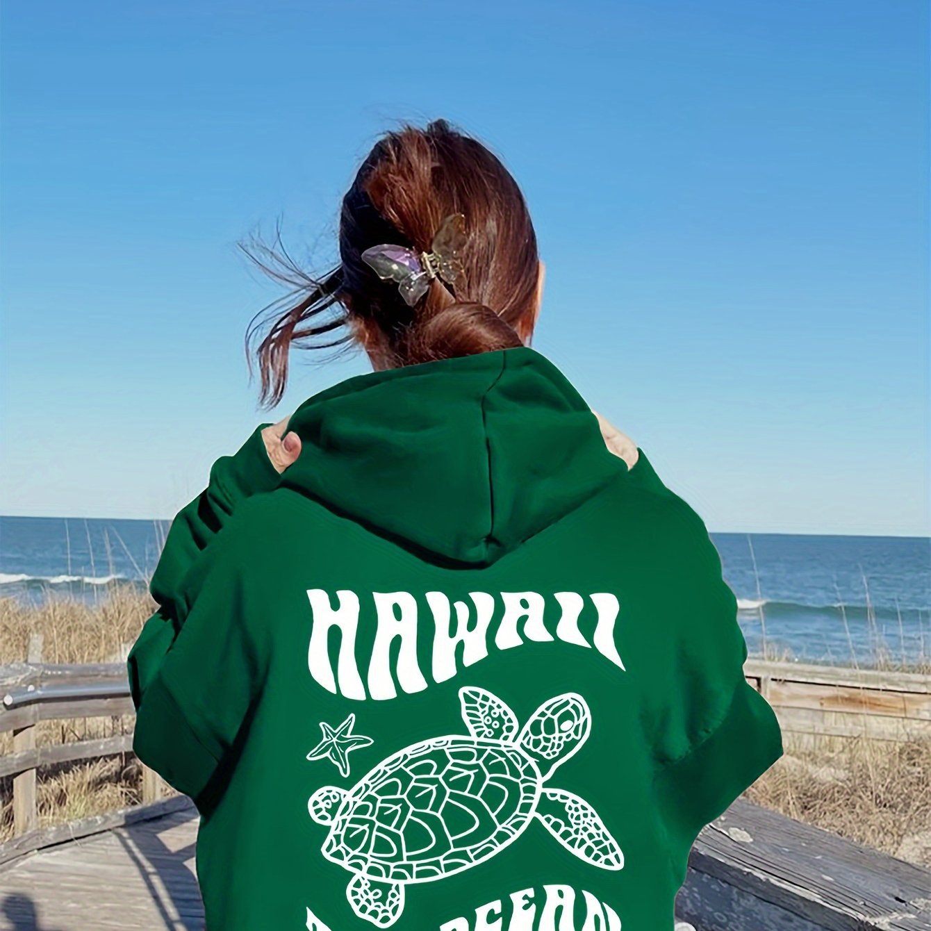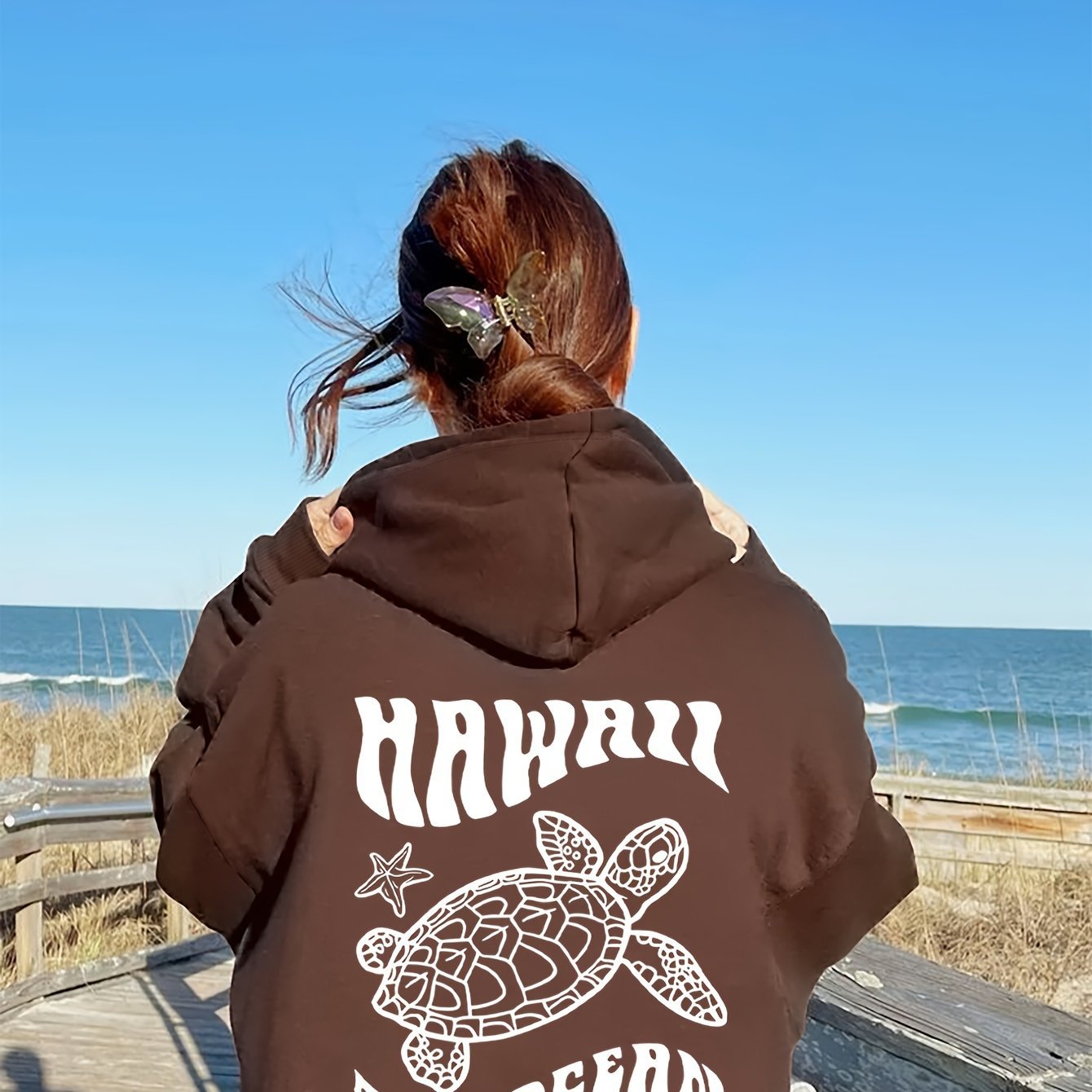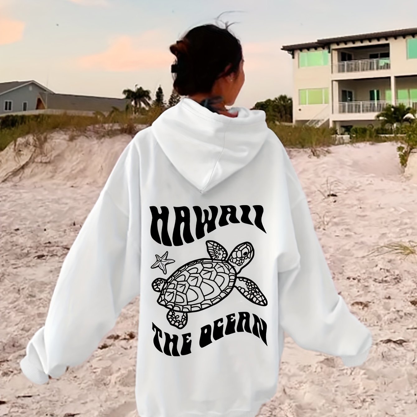 Comfortable Suede Hoodie Turtle And Starfish Pattern Sweater