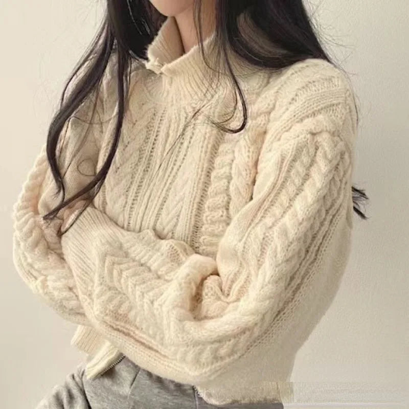 Neploe Harajuku Sweet Double Zipper Tops Womnen Y2k Vintage Crop Top Sweaters Mujer Long Sleeve Loose Knitted Cardigan