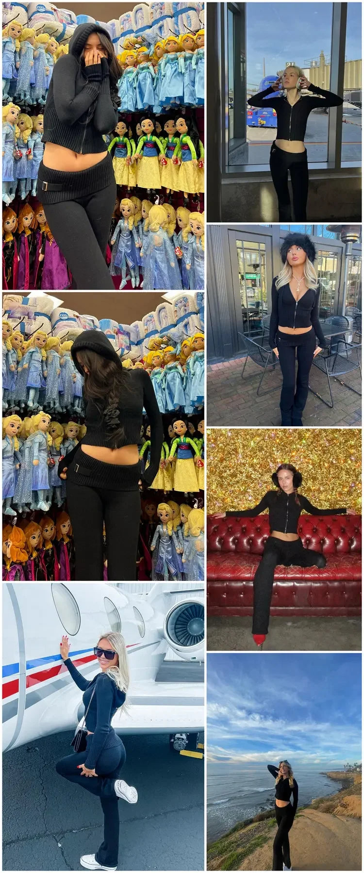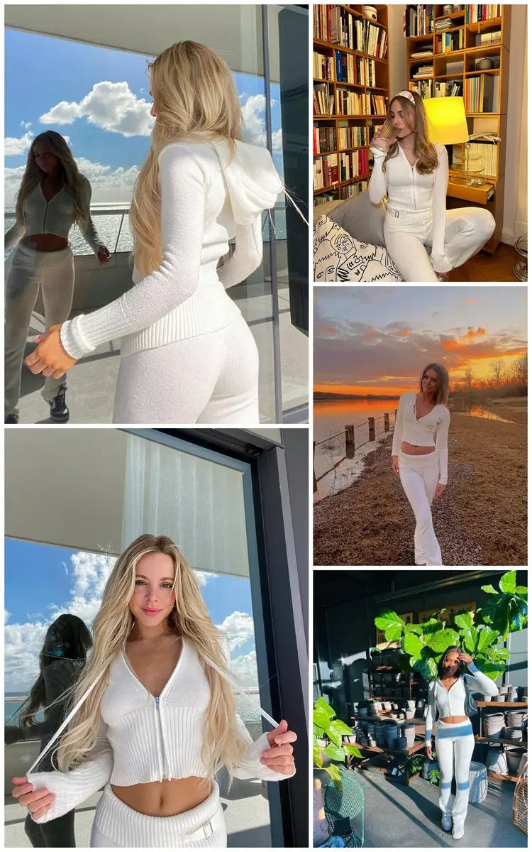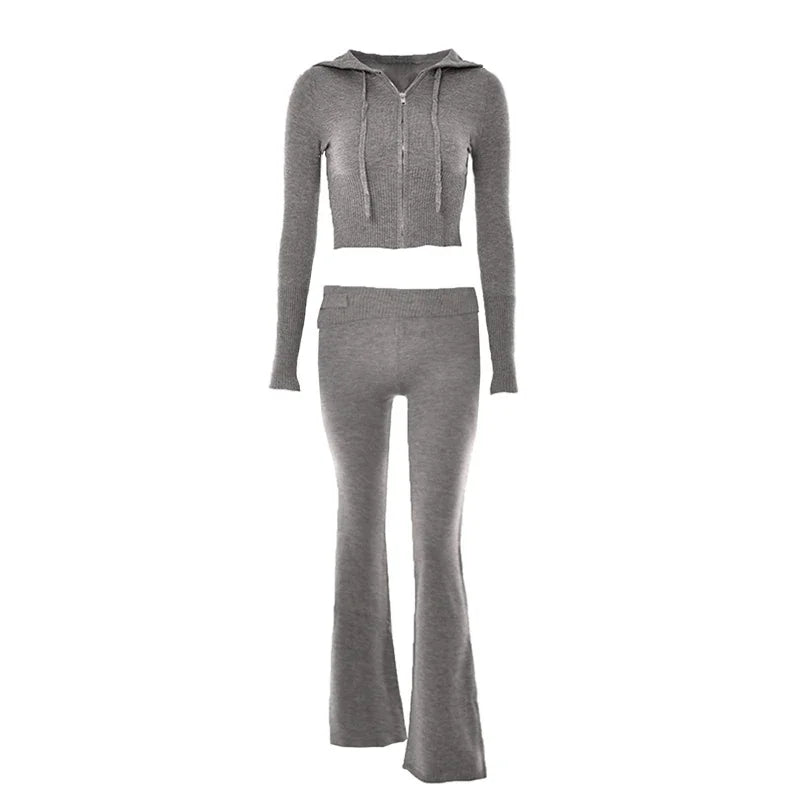 Tossy Knit Fashion 2 Piece-Set Trousers Hoodie Tracksuit Women Crop top Knitwear And Women's Pants Sets Female Trousers Outfits