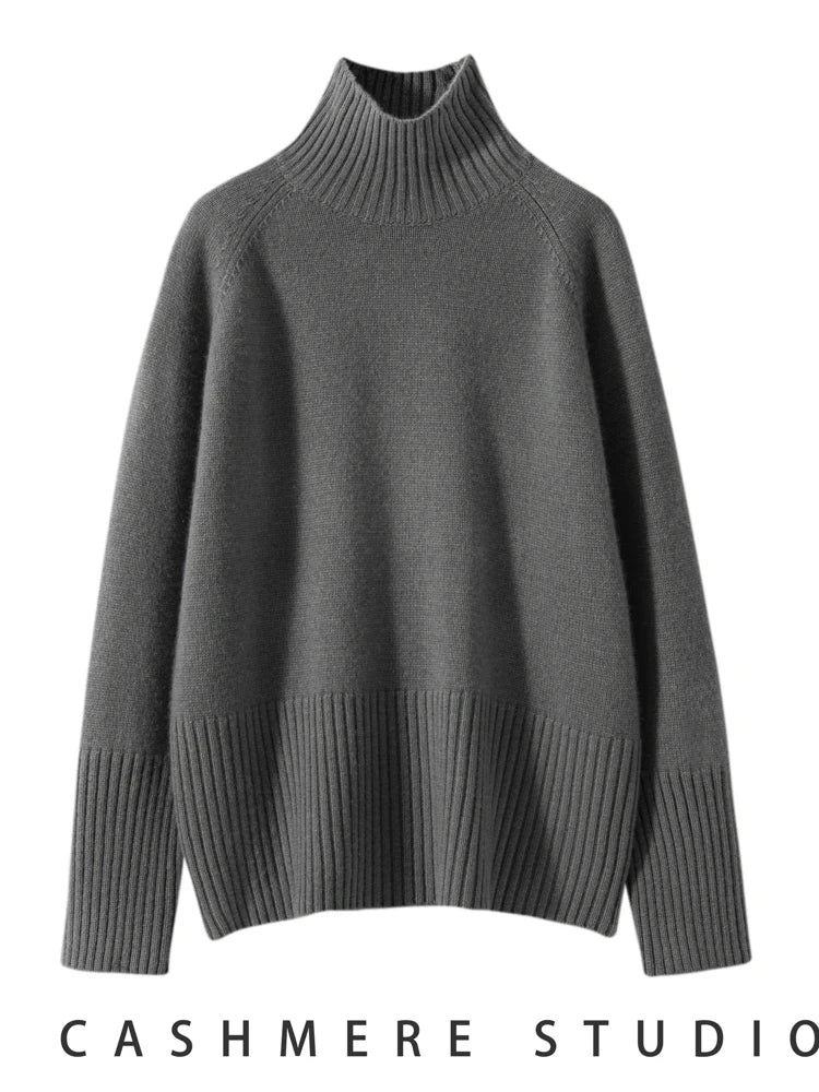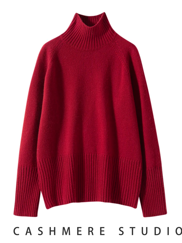Women's 100% Cashmere Sweater Turtleneck Raglan Sleeve Pullover Autumn Winter Thick Casual Loose Style Cashmere Knitwear Korean